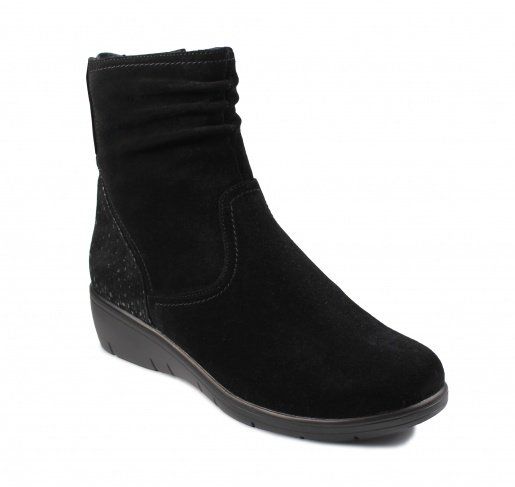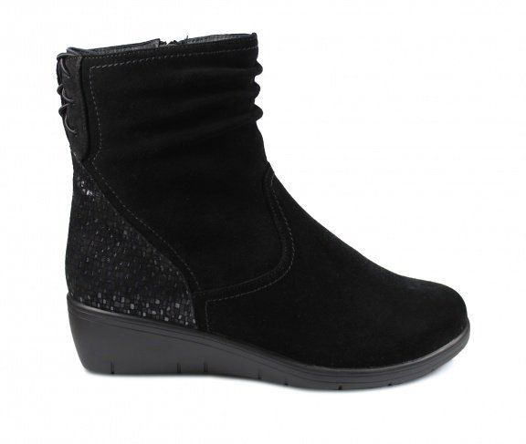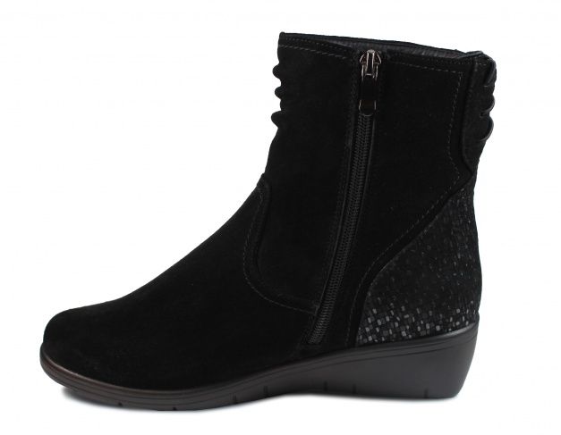 Полуботинок снабжен несколько большей чем обычно уплотненной задней частью, сформированной из термопласта. Она позволяет надежно фиксировать пяточную область в естественном положении, к тому же задник держит форму достаточно долгое время. Изнутри ботинки достаточно широки, а вставка из трикотажа отлично растягивается, что позволяет добавить в обувь орто-стельку, индивидуально изготовленную.