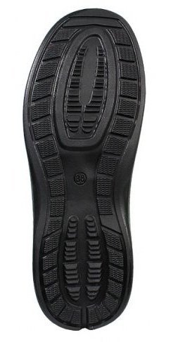 - Нескользящая подошва из полиуретана цельнолитого типа обеспечена небольшим подъемом в области пятки.