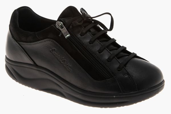 Полуботинок снабжен несколько большей чем обычно уплотненной задней частью, сформированной из термопласта. Она позволяет надежно фиксировать пяточную область в естественном положении, к тому же задник держит форму достаточно долгое время. Изнутри ботинки достаточно широки, а вставка из трикотажа отлично растягивается, что позволяет добавить в обувь орто-стельку, индивидуально изготовленную.