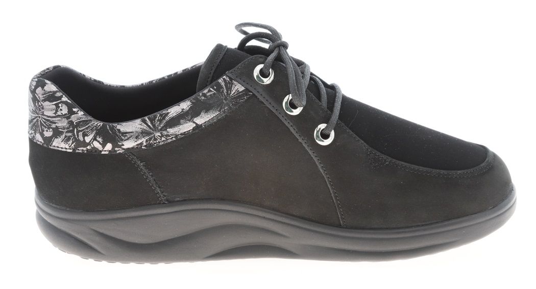 Полуботинок снабжен несколько большей чем обычно уплотненной задней частью, сформированной из термопласта. Она позволяет надежно фиксировать пяточную область в естественном положении, к тому же задник держит форму достаточно долгое время. Изнутри ботинки достаточно широки, а вставка из трикотажа отлично растягивается, что позволяет добавить в обувь орто-стельку, индивидуально изготовленную.