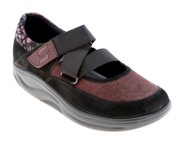 Полуботинок снабжен несколько большей чем обычно уплотненной задней частью, сформированной из термопласта. Она позволяет надежно фиксировать пяточную область в естественном положении, к тому же задник держит форму достаточно долгое время. Изнутри ботинки достаточно широки, а вставка из трикотажа отлично растягивается, что позволяет добавить в обувь орто-стельку, индивидуально изготовленную.