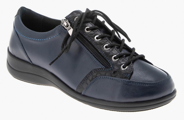 Полуботинок снабжен несколько большей чем обычно уплотненной задней частью, сформированной из термопласта. Она позволяет надежно фиксировать пяточную область в естественном положении, к тому же задник держит форму достаточно долгое время. Изнутри ботинки достаточно широки, а вставка из трикотажа отлично растягивается, что позволяет добавить в обувь орто-стельку, индивидуально изготовленную.
