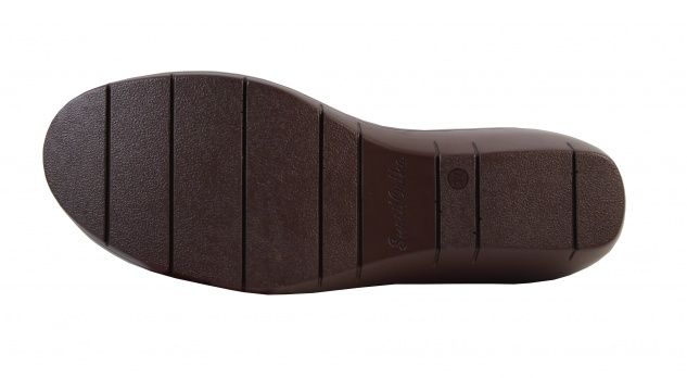 - Нескользящая подошва из полиуретана цельнолитого типа обеспечена небольшим подъемом в области пятки.