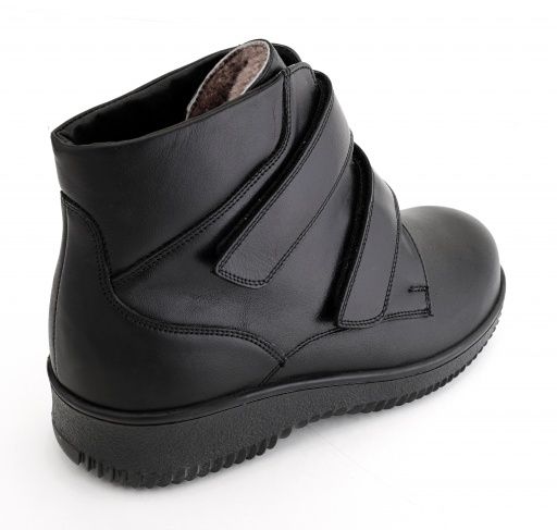 Лечебную обувь снабжают более плотным задником, имеющим специальную форму, его производят из термопласта. Уплотненная задняя часть не меняет форму даже спустя длительное время, что дает возможность надежно фиксировать пятку в естественным положении. В комплекте к таким сапогам предлагают стельку анатомического типа, она мягкая и ее можно вынимать.