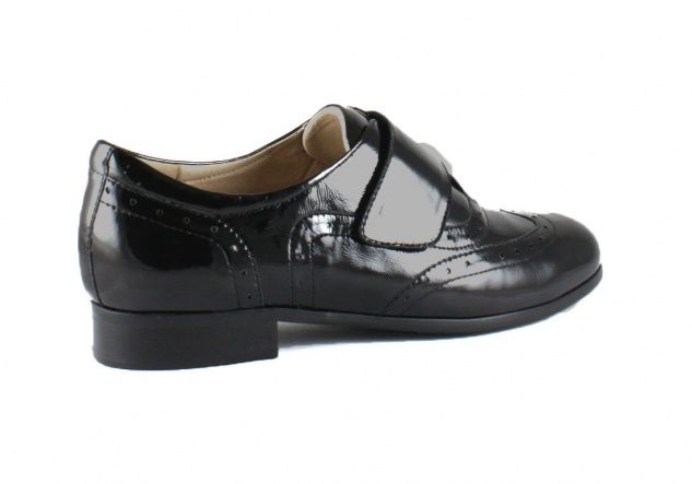 Полуботинки снабжены специальной пяткой определенной формы, она увеличена и уплотнена, сделана из термопласта. Такой вид задней части сохраняет свою форму, фиксирует пяточную область в естественном положении.