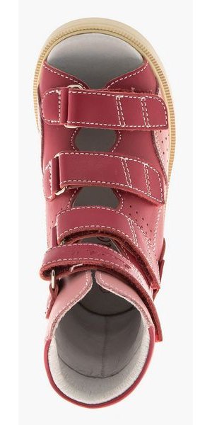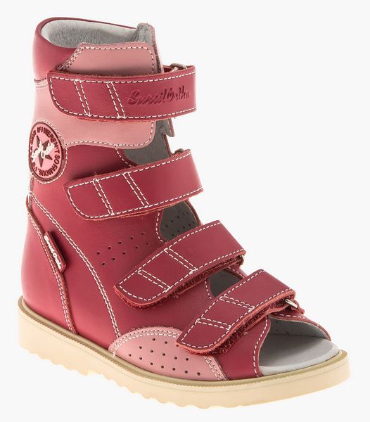 Сандалии изготавливают из нат.кожи. Обеспечивают их жесткой задней частью и берцами, которые отлично поддерживают стопы при их отклонениях. Высокий берец необходим для иммобилизации движения голеностопа. Это дает возможность суставам развиваться правильно или предотвращает развитие деформаций, эффект достигается при регулярном ношении.