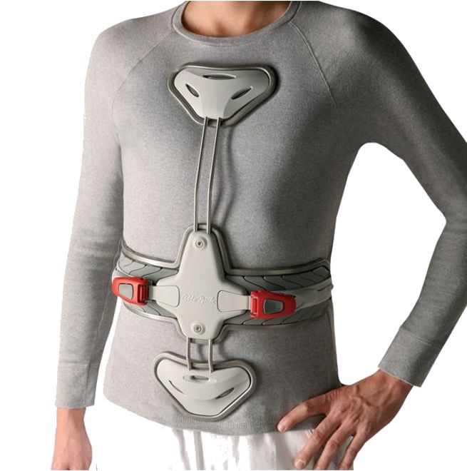 Трехточечный гиперэкстензионный ортез призван уменьшить грудной кифоз и увеличить поясничный лордоз, а также разгрузить передние отделы тел позвонков. Также ортез облегчает и устраняет болевые синдромы и ускоряет восстановление костной ткани позвонка в области перелома.